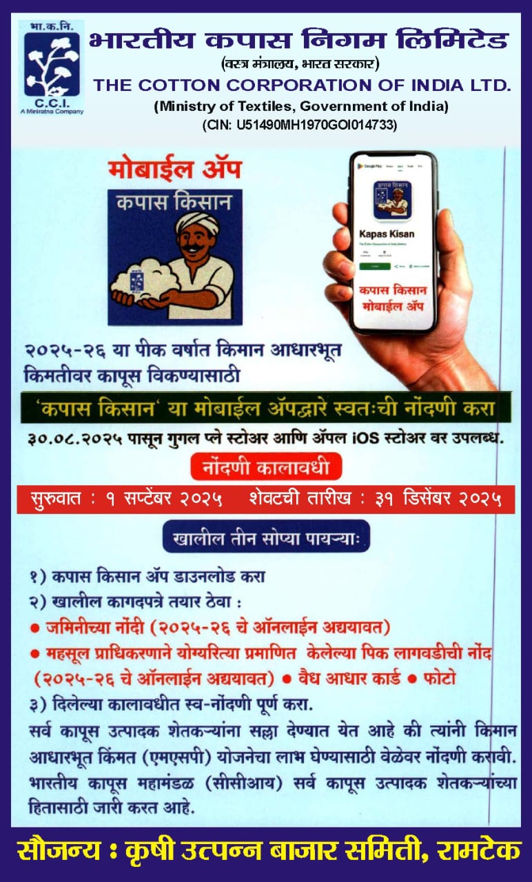 MSP कापूस विक्रीसाठी ‘कपास किसान’ ॲपवर त्वरित नोंदणी करा