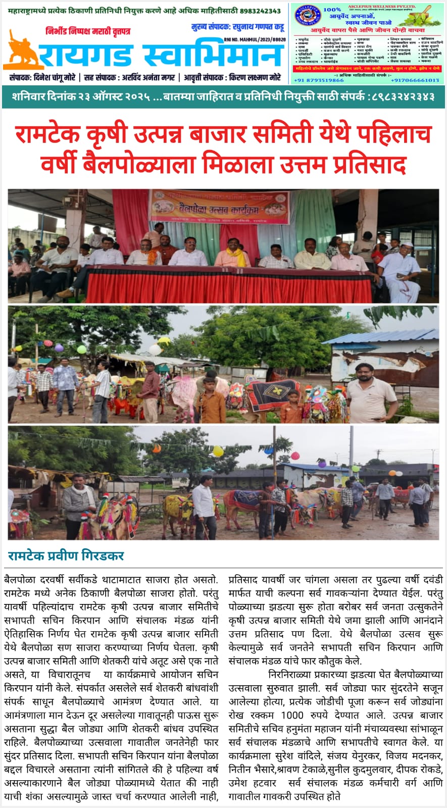 From the year 2025-26, Bail Pola Festival is being celebrated in the main market premises of the committee.