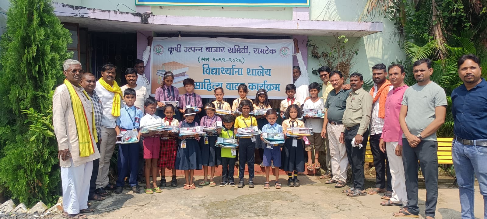 Every year, the committee distributes educational materials to farmers' children.